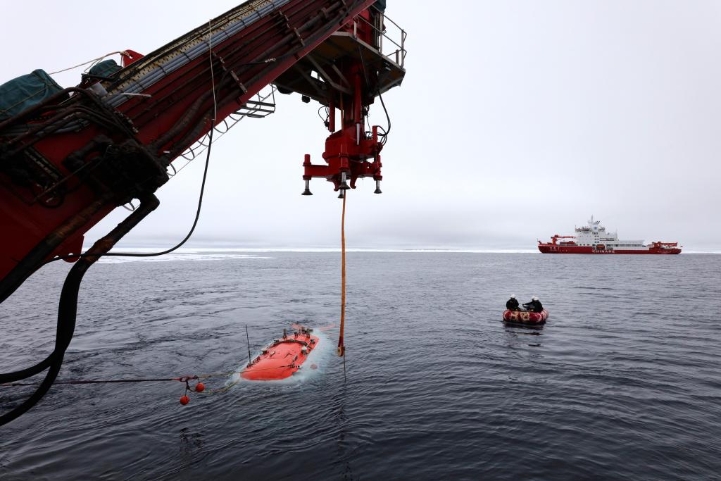 这是“蛟龙”号完成国产化升级改造、继南海海试之后正式进入极区作业,成功完成我国首次北极冰区载人深潜,并首次实现双潜器——“蛟龙”号载人潜水器和ROV(无人遥控潜水器)在北极海域水下协同作业,显示我国深海进入和深海探测能力持续增强。